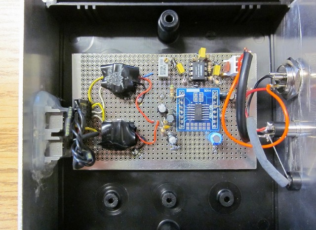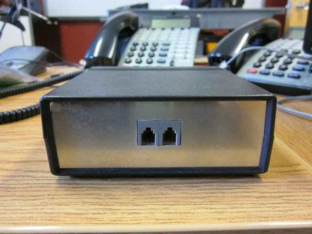 Voici un petit enregistreur téléphonique que j'ai fait afin de pouvoir enregistrer les conversations téléphoniques. Son avantage est qu'il fonctionne avec les téléphones IP puisque l'audio est capté du combiné. J'ai utilisé un transformateur audio et un préamplificateur de micro SSM2166 pour amplifier le signal. J'ai aussi monté un filtre passe-bas pour améliorer la qualité de l'enregistrement. Un lecteur MP3 peut y être connecté pour l'enregistrement.