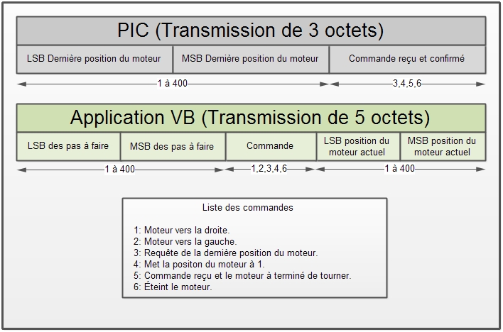 Les octets envoyés entre le PIC et le PC sont les suivants: